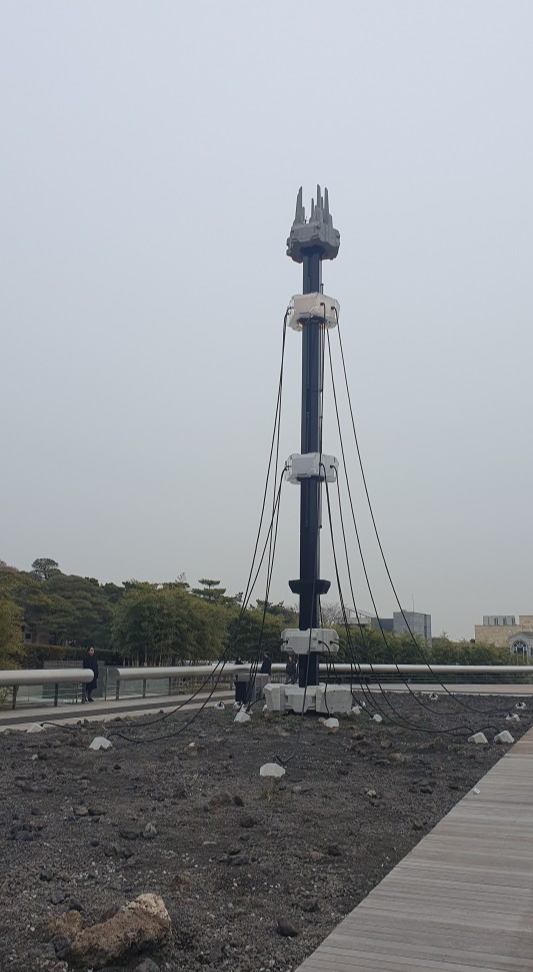 야외무대에는 예전 리움미술관을 대표하던 큰 거미 <마망>이 서있던 자리에 커다란 기계탑이 세워져 있습니다. 시시각각 변하는 음향소리는 소음, 진동, 습도, 온도, 대기오염까지 소리에 반영해서 AI 가 만들어낸 새로운 소리입니다.