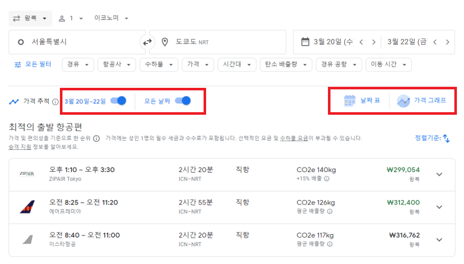 2. 여행지 확정 후 가장 저렴한 항공권을 찾을 때