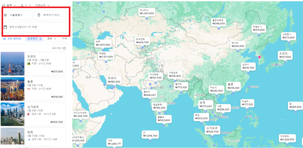 구글 플라이트를 이용해서 가장 저렴한 항공권을 검색하는 방법을 알아보겠습니다.